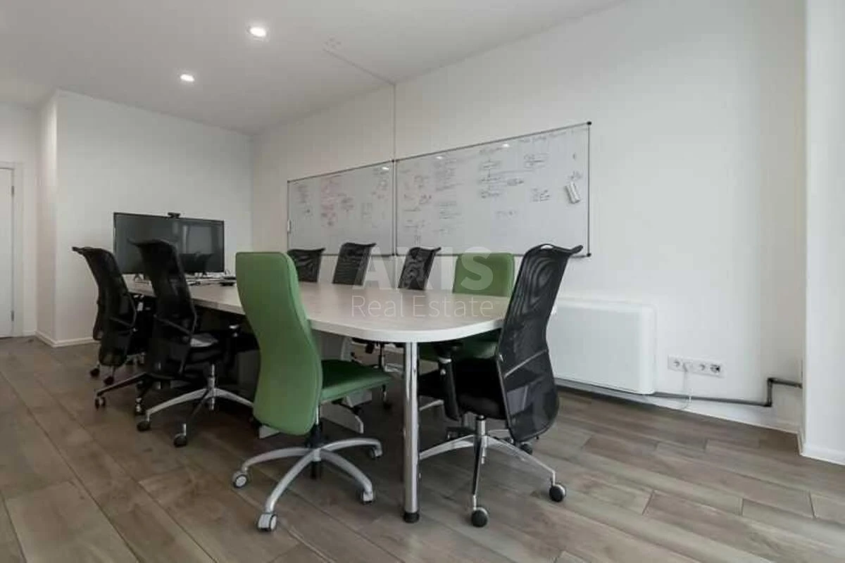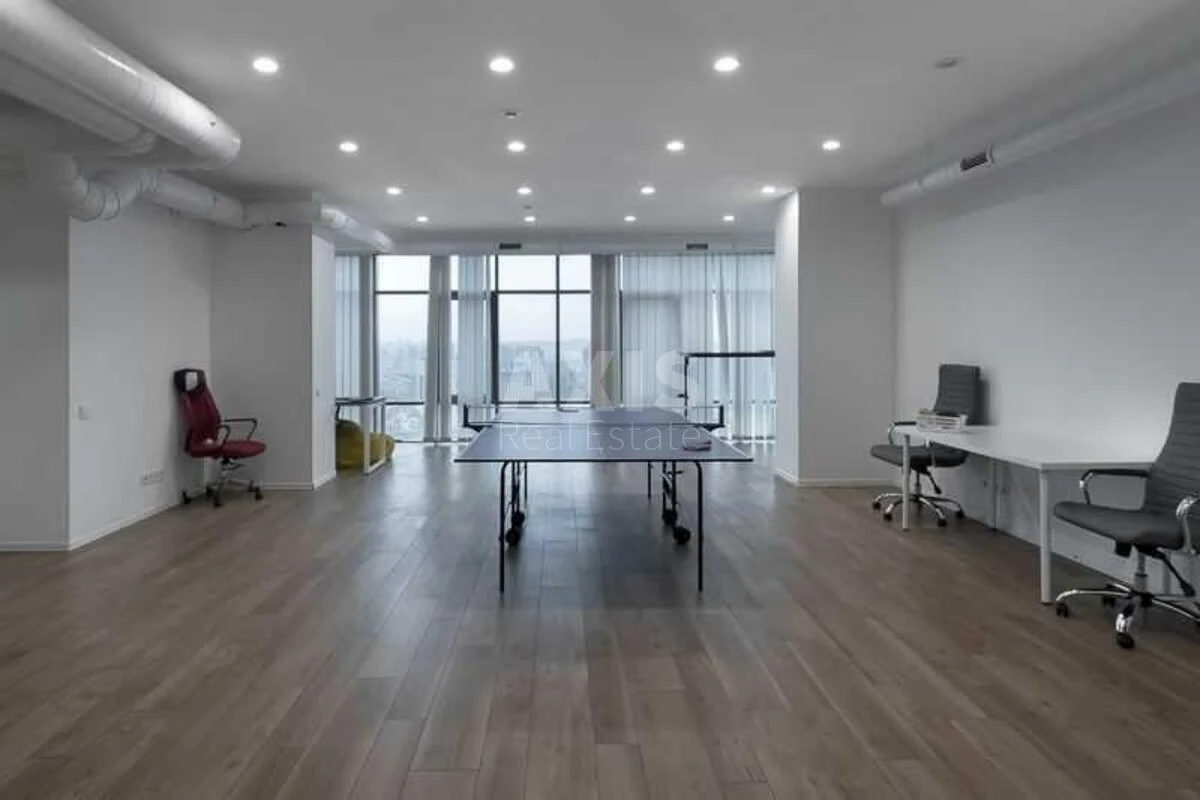 Офісне приміщення. Планування: 2 просторі зали open space, 4 окремі кабінети. Переговорна кімната. Кухня, 4 санвузли, серверна кімната. Стан та технічне оснащення. Якісний офісний ремонт. Система центрального кондиціонування. Професійна витяжна система по всьому приміщенню. Додаткові кондиціонери у кабінетах. Підлога — плитка. Скляні перегородки для зонування простору.