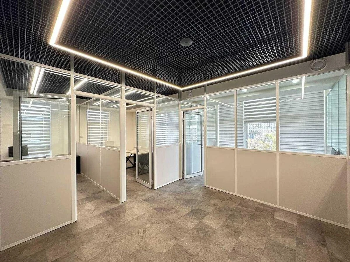 Офісне приміщення. Планування - кабінетна система, кухня, с/в. Стан – із сучасним ремонтом, після орендаря. Офісна будівля оснащена системою кондиціювання, відеоспостереження, пожежогасіння. Своє внутрішнє подвір'я. Своє паркування.