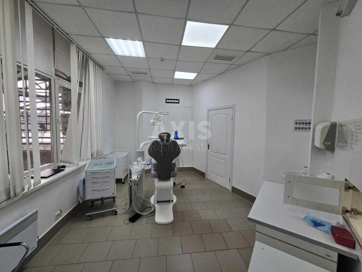 Офісне приміщення. 1-й поверх, нежитловий фонд, 2 окремі вхідні групи, фасадні вікна, висота стелі — понад 3,5 м, підлога — плитка, багато природного світла. Планування: окремі кабінети, технічні приміщення, кухня, 2 санвузли. Раніше використовувалось під стоматологічну клініку — ідеально підійде під медицину, салон, офіс, навчальний центр або інший бізнес