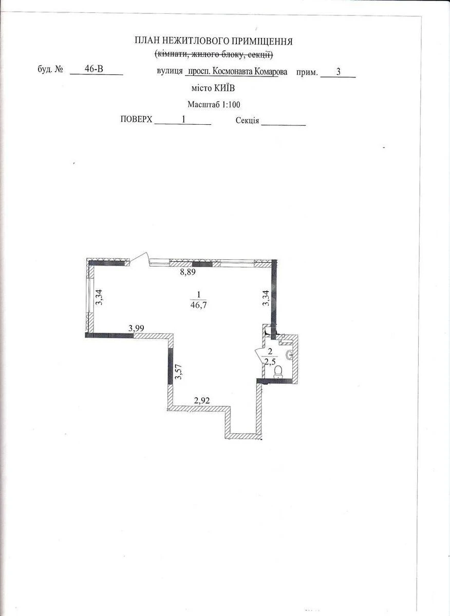 Об'єкт торгівлі пр-т Комарова Космонавта 46В, 49м2