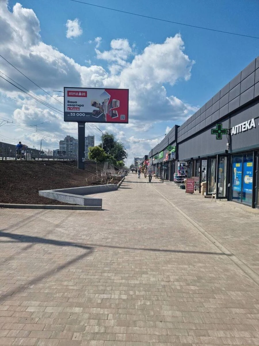 Приміщення вільного призначення. Оновлений в сучасному стилі фасад торгового ряду. Великі фасадні вікна. Приміщення з ремонтом: плитка на підлозі, висока стеля, з водою, каналізацією. Приміщення на два входи : фасадний для покупців та тилу для загрузки - вигрузки. Орендні канікули та пропозиції обговорюються. Три фази електроенергії, потужність 35 кВатт, можливість збільшення до 50 кВатт. Електроенергія без відключення !! від заводу. Інтенсивний трафік. Поряд завод ім. Антонова, станція міської електрички, кінцеві зупинки багатьох видів транспорту.