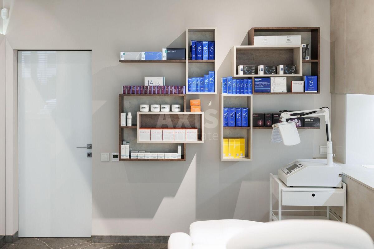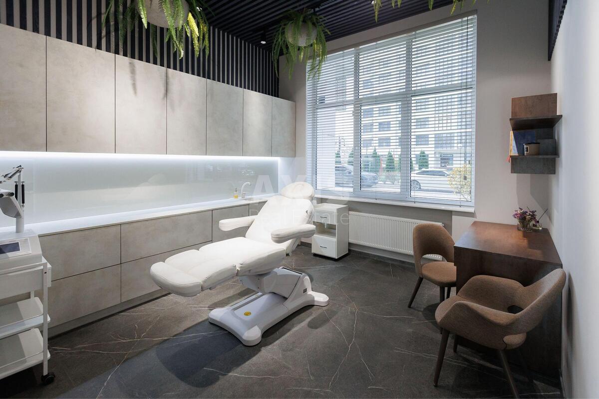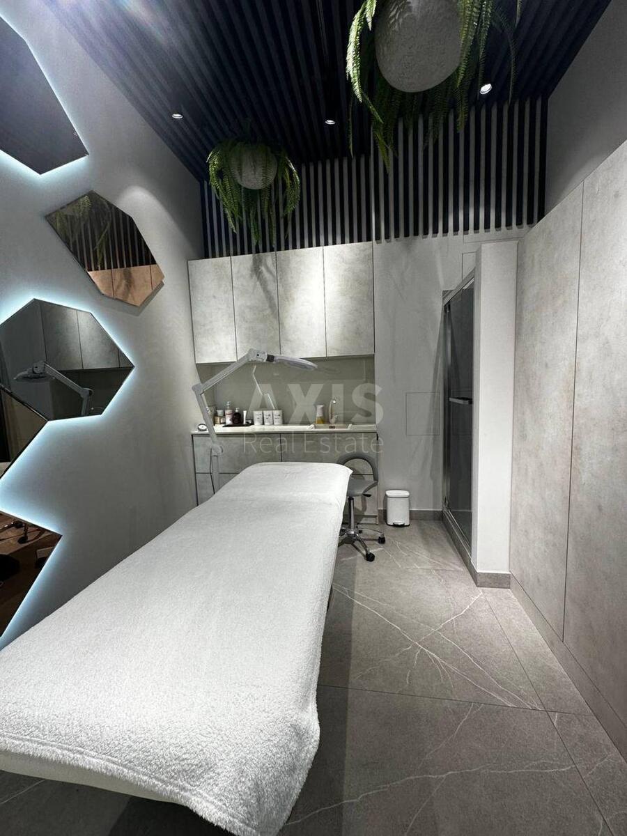 ЖК “Новопечерські Липки”, приміщення вільного призначення. Приміщення включає: косметологічний кабінет. Масажний кабінет з душем. Окремий зал для стиліста по волоссю. Місце для педикюру. 2 місця для манікюру. 2 місця для макіяжу. 2 робочих місця для перукарів та 1 мийку. Кабінет для персоналу. Гостьовий санвузол.