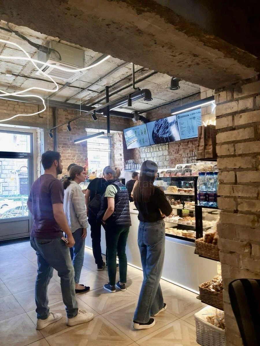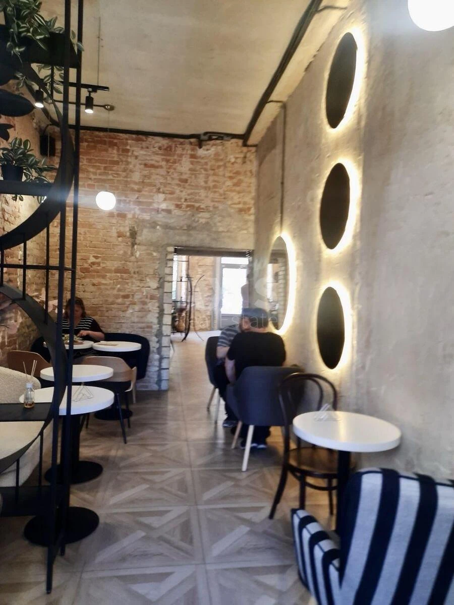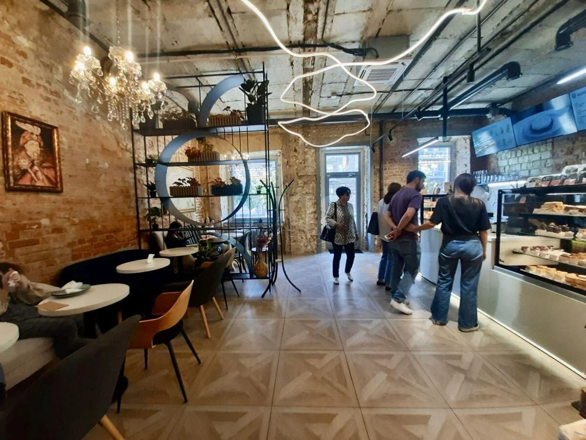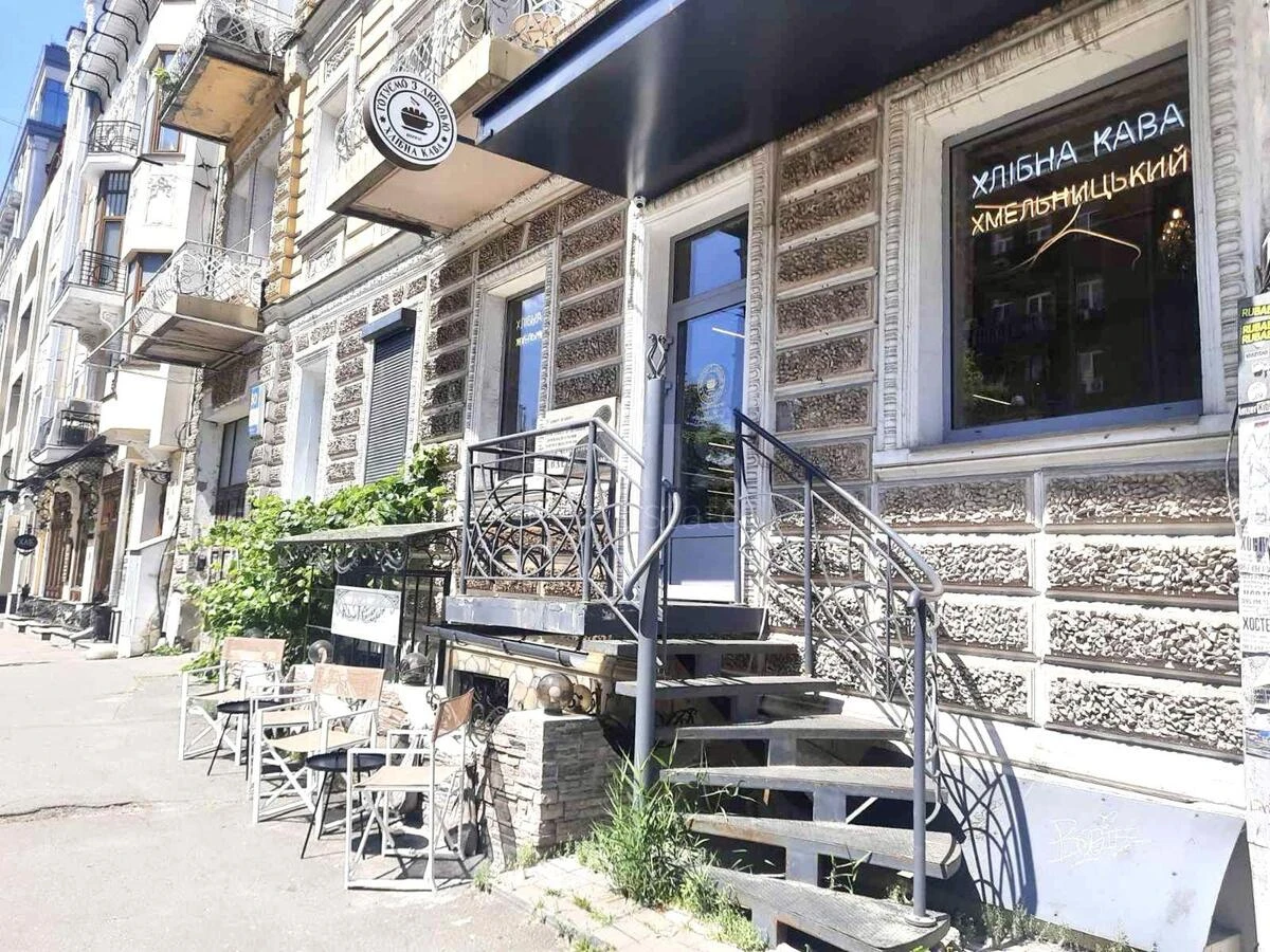 Приміщення вільного призначення. Фасадне розташування — максимальна видимість та потік клієнтів. Високий перший поверх + затишний балкон. Площа — 61,5 м², функціональне планування. Окремий фасадний вхід та додатковий вихід у під’їзд. Місце для облаштування літньої тераси. Високі стелі 3,5 м — відчуття простору та можливість стильного дизайну. Професійна система вентиляції, вивід труби на дах. Підключення до всіх міських комунікацій. Електропотужність 15 кВт. Вже працює орендар — затишне кафе «Хлібна кава».