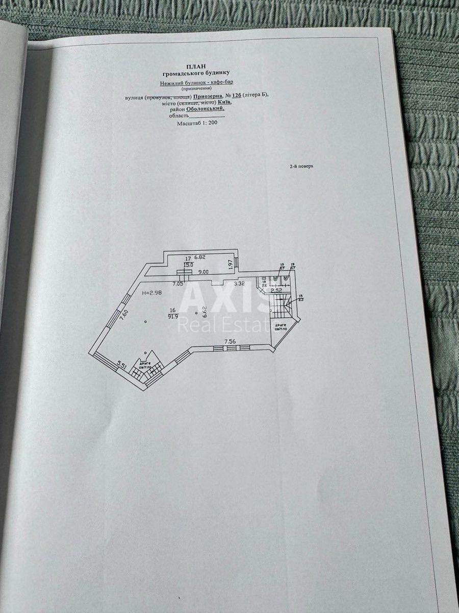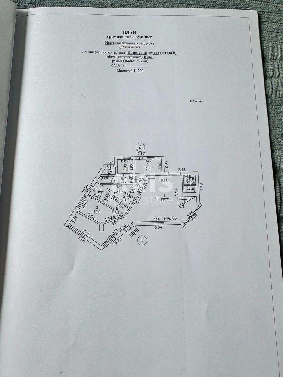 Приміщення вільного призначення. Будівля площею 260 м2: 127,5 м2 на 1 поверсі та 132,5 м2 на 2 поверсі, площа земельної ділянки трохи більше 5 соток. Підключено всі міські комунікації. Великі панорамні вікна. Тераса з видом на парк та озеро. У 2024 році був зроблений капітальний ремонт будівлі, електропроводки, даху, встановлено нові вікна. Вся прибудинкова ділянка огороджена, можливе комфортне паркування до 8 авто.