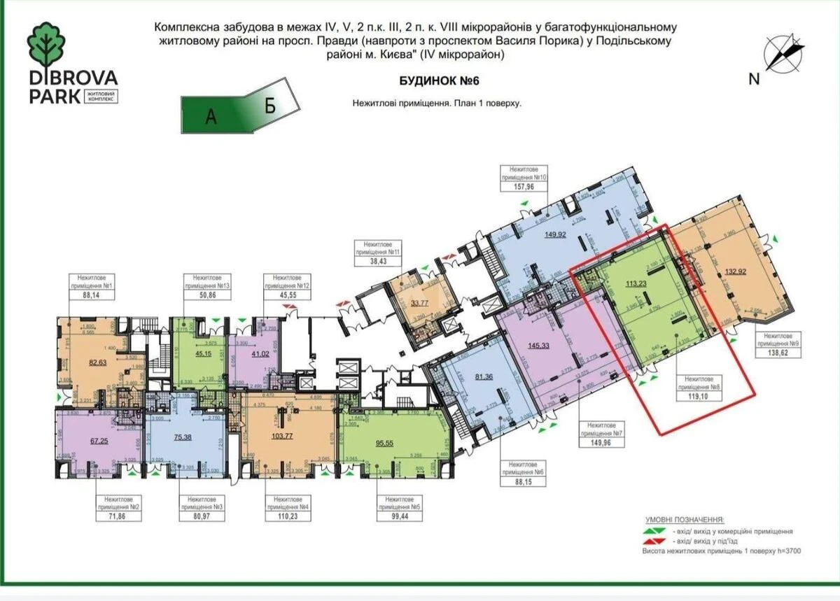 ЖК Діброва Парк, приміщення вільного призначення. Діброва Парк -сучасний житловий комплекс зі своєю інфраструктурою. Близькість приміщення до метро та фасадне розташування на проїздну частину вулиці з великим авто трафіком забезпечує гарну видимість приміщення та як результат - високий потік потенційних клієнтів. Великі ветринні вікна.