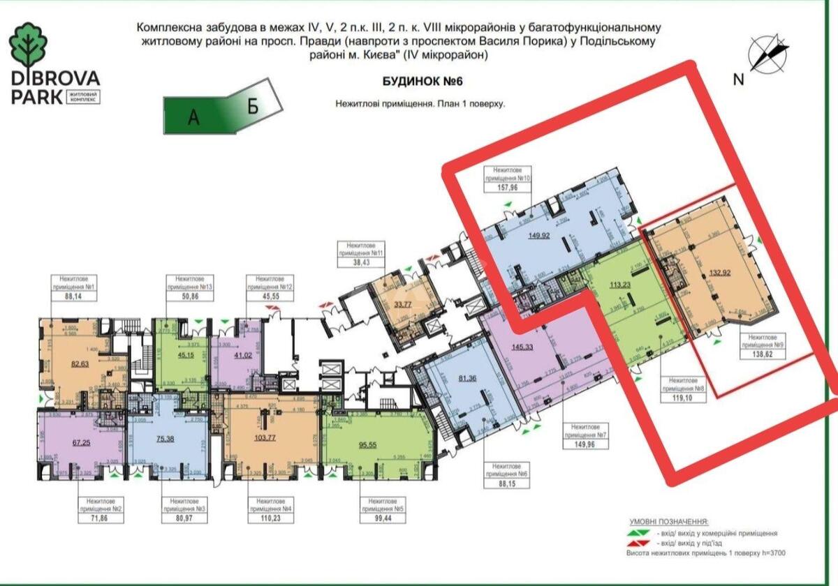 ЖК Діброва Парк, приміщення вільного призначення. Діброва Парк -сучасний житловий комплекс зі своєю інфраструктурою. Близькість приміщення до метро та фасадне розташування на проїздну частину вулиці з великим авто трафіком забезпечує гарну видимість приміщення та як результат - високий потік потенційних клієнтів. Великі ветринні вікна! Три окремі вхідні групи, можливість поділу. Стан після будівельників, планування open space, можливість облаштування під будь-який вид бізнесу.