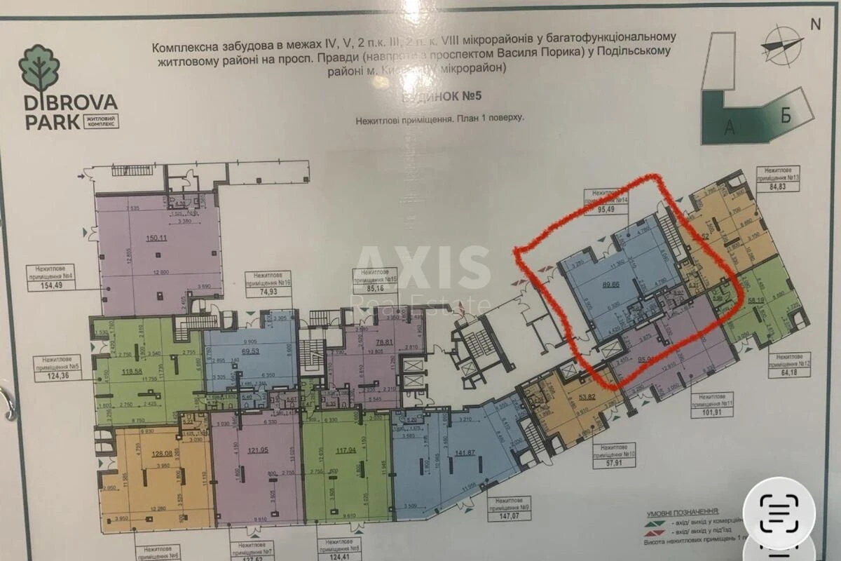 ЖК «Диброва парк», приміщення вільного призначення. Приміщення знаходиться у будинку з поверховістю 25 поверхів, що забезпечує високий пішохідний трафік завдяки великій кількості мешканців. Вдале розташування на першому поверсі гарантує зручний доступ для клієнтів та хорошу видимість. Об’єкт підключений до всіх необхідних комунікацій: електропостачання, центральна каналізація, організований вивіз відходів. До будівлі веде асфальтована дорога, що забезпечує комфортний під’їзд у будь-яку пору року.